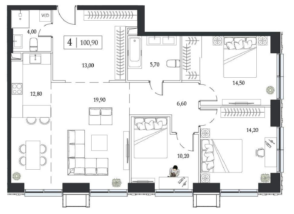 Общая: 100,9 м2